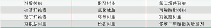 INT 8601樹脂與絕大多數(shù)用于涂料/油墨的樹脂有良好的相容性。包括下列樹脂: