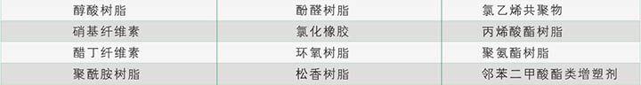 INT 8603酮醛樹脂與絕大多數(shù)用于涂料/油墨的樹脂有良好的相容性。包括下列樹脂: